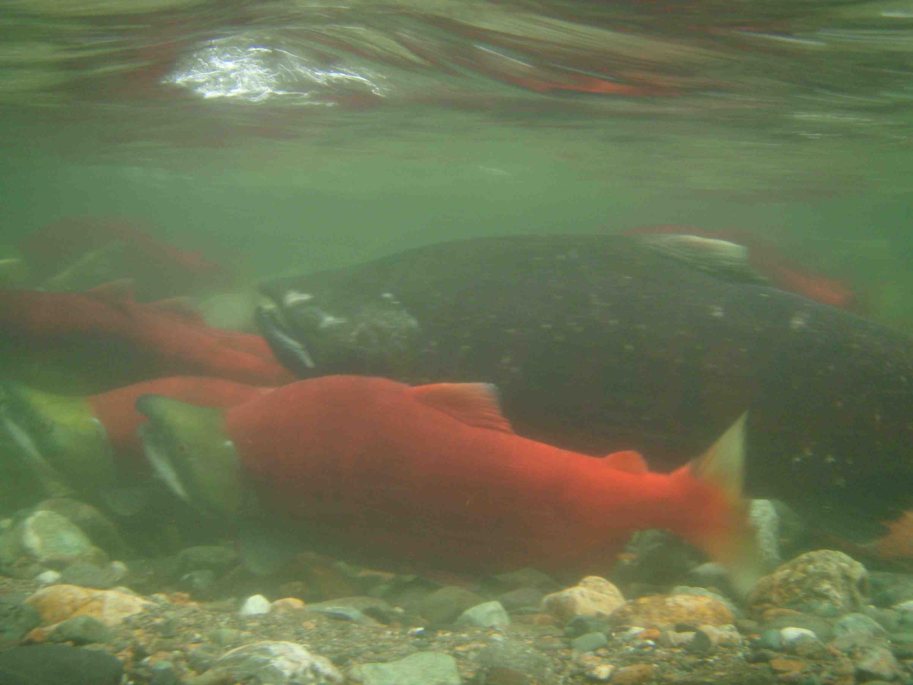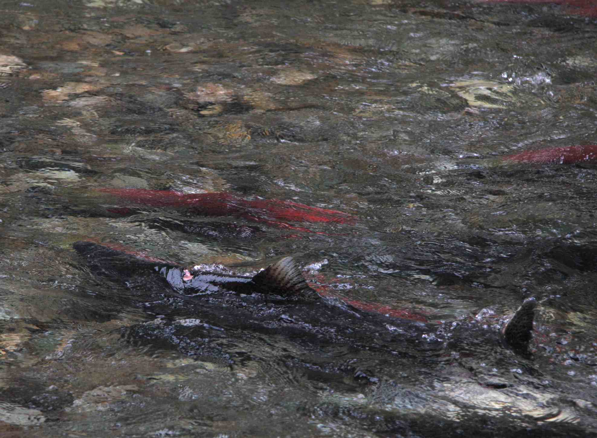 This fish gave all that she carried from the ocean to this river bank. Salmon are like a bloodstream. They store the energy of sunlight hitting the open ocean and carry to places like this deep inland. These salmon were spawning and thriving without any human help. They simply need us to stay out of their way, let them make a living along side of us and they offer us food, forests, oxygen made by the trees they feed and they are good for our spirit. Everywhere I go I meet people who are dedicated to these fish, who simply love them and want them to thrive.