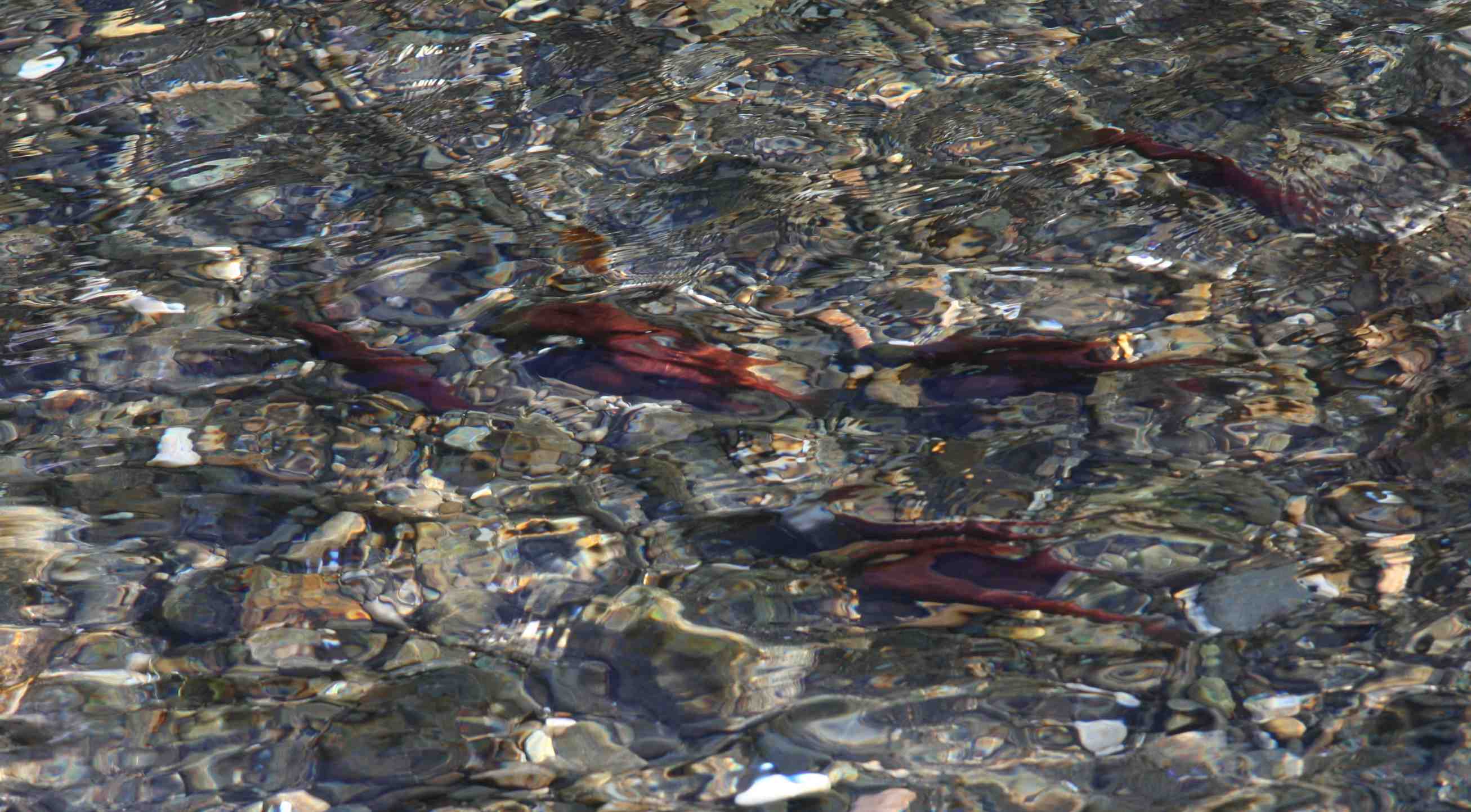A woman happened by and told us that there were thousands of Kokanee spawning in the Little Horsefly and so we headed up there and found them in crystal clear water.