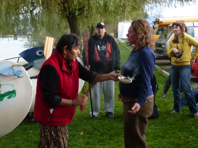 Then we were each smudged before getting into our canoes