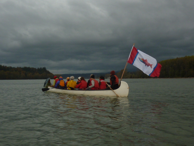 Aaron Williams of the Squamish Nation gave us all a lesson on protocol. We learned to raise our paddles as we came in to signify we were not attacking, and to back our canoes in because no one can rush the beach while backing up a canoe!