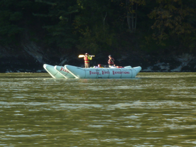 Fraser River Rafts came with us in case any needed rescue and they pointed like this with their paddles to steer us away from trouble.