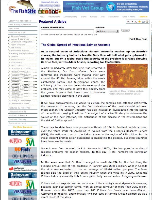 If we look around the world Cermaq has sites in Chile that are “suspect” ISA virus and sites in Long Fjord , Alta, Norway that are also suspect for ISA virus (called ILA in Norwegian)