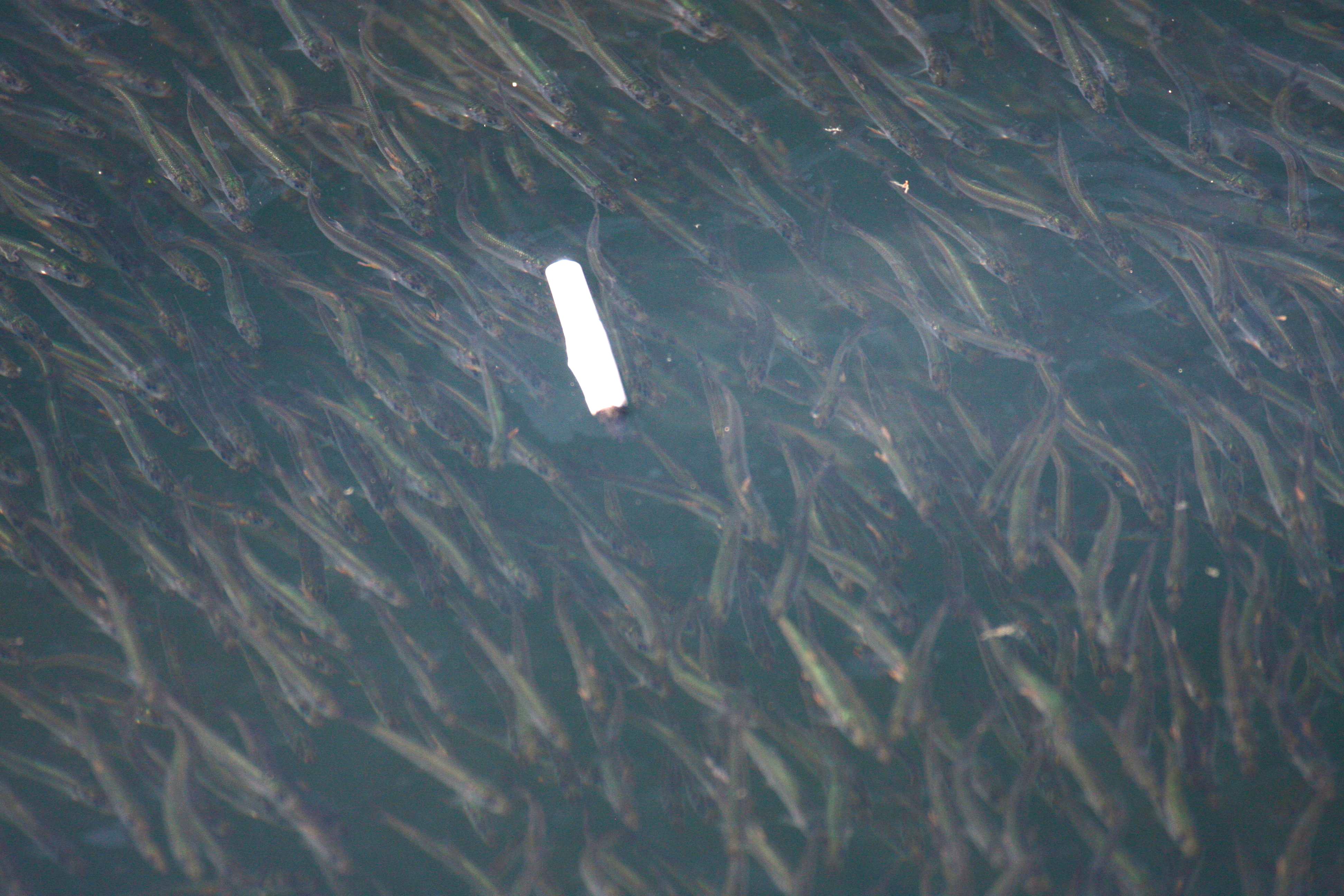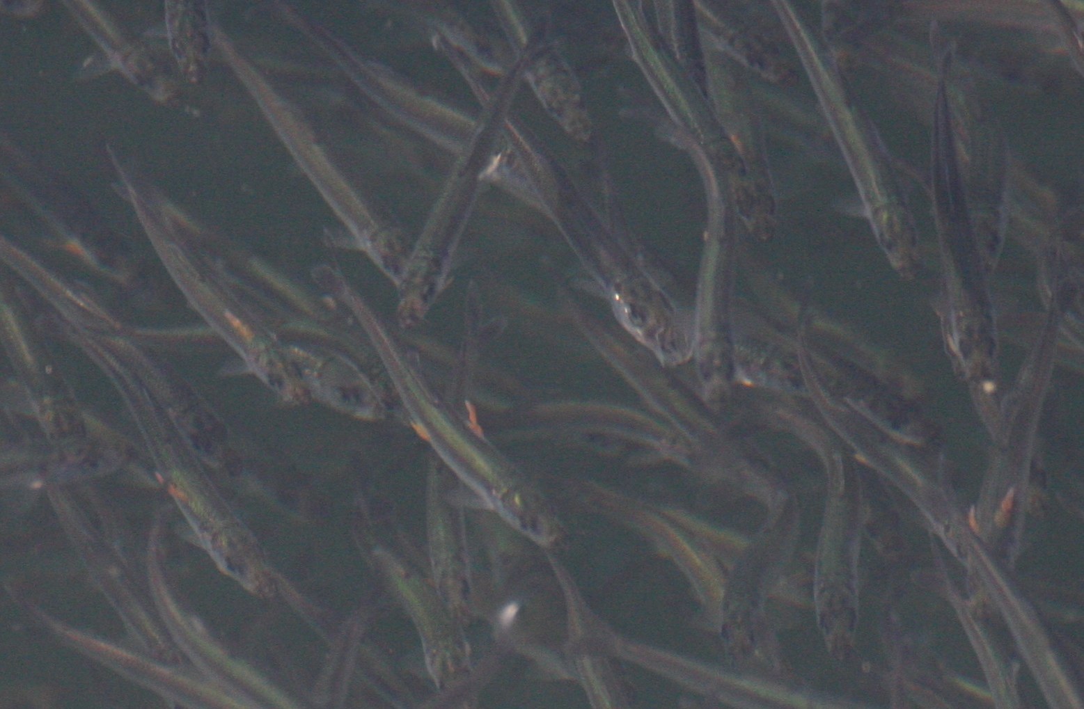 I took these pictures on the evening of July 18 off a dock near northern Vancouver Island. If you look closely you will see there are sea lice on a lot of them. Sea lice on herring this small (they are about 4cm long) were never reported before salmon farms arrived. These lice appear to be Caligus, which are also found on farm salmon. There were thousands of herring, all of which are very young. For there to be this many lice, these little herring must have passed through an area with a lot of adult lice.