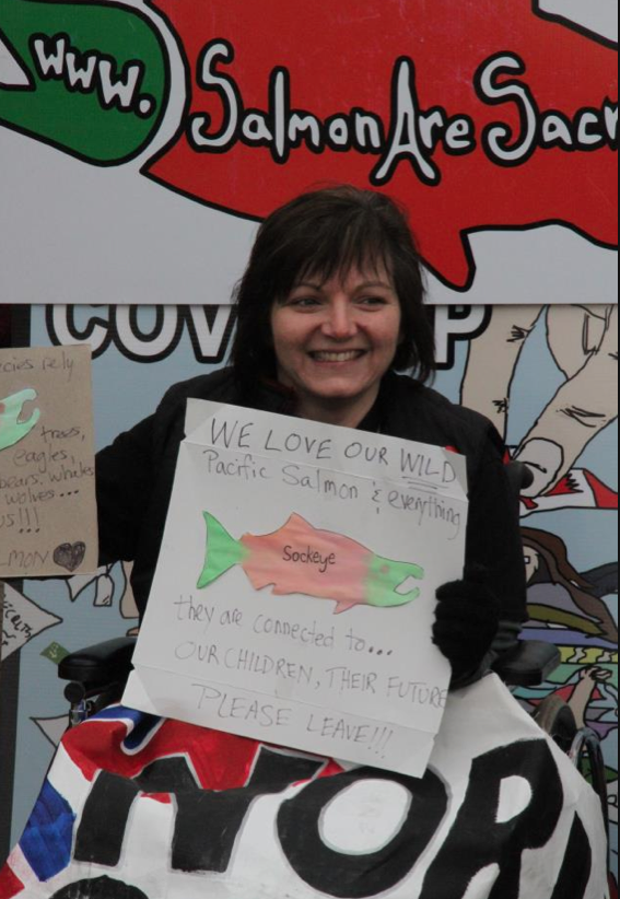 This photo of Laurie Jensen, Mainstream Canada Communications, sums my 23 years of experience with this industry. While Laurie seems to have anger management issues, she is at least honest in her display caught here amongst us in Campbell River. I feel the same response from the other companies, that it does not matter what you people want, this industry is going to pollute your waters. The people who live and belong to the waters between Kingcome and Knight Inlet have told the industry they don’t want it. They have served eviction notices in war canoes, filed a very costly Class Action Suit against them and yet the industry steps onto their lands however and whenever they wish. They do not allow us to look into the pens to see what the wild fish are inside, they do not let us test their fish. My community tried to be positive about their arrival, but had no say in where the pens were placed. We have no right to protect wild fish or our livelihoods.