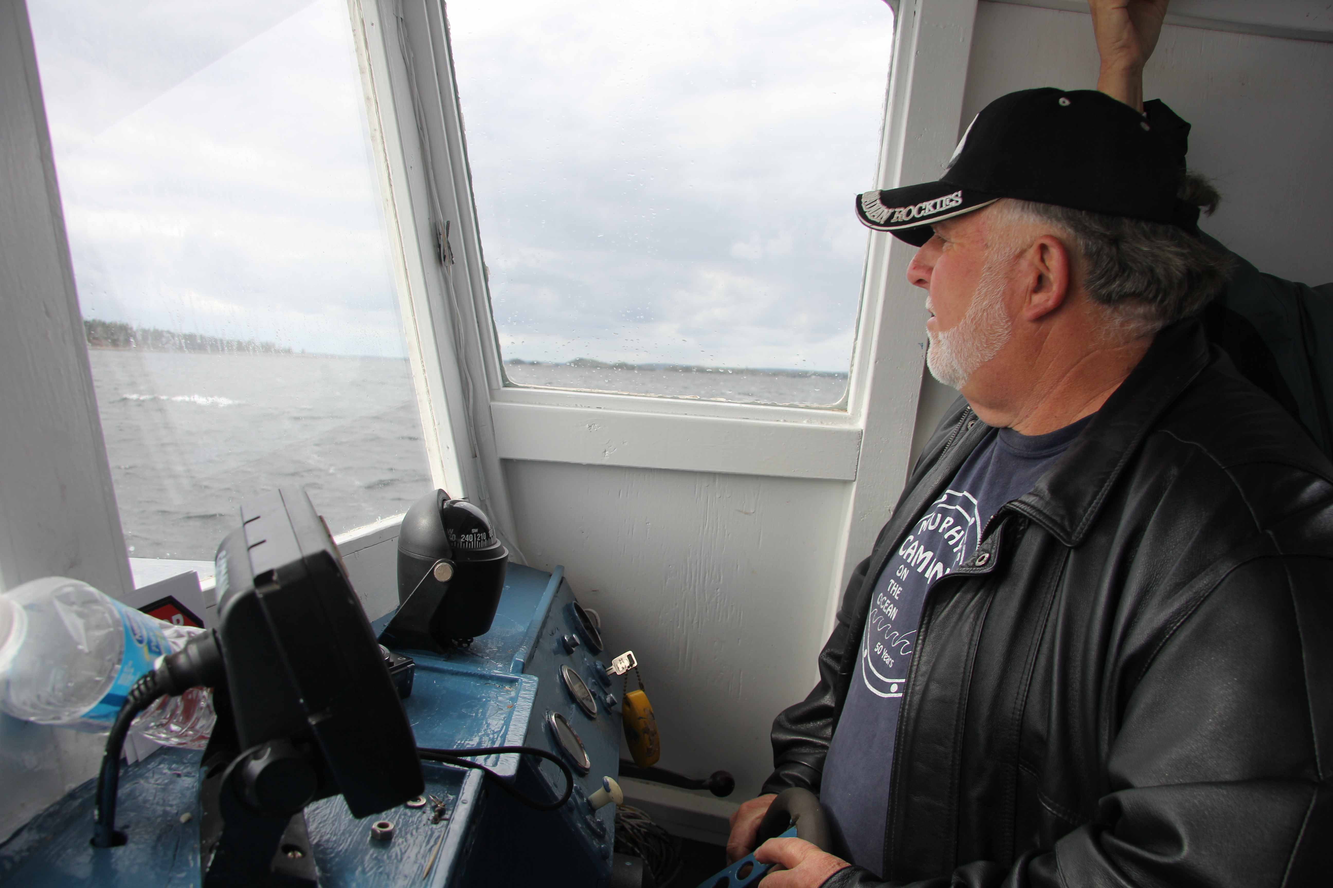His family used to fish lobsters, but for the last 50 years Brian takes people out to enjoy the wild beauty of the bay that he and Marilyn call home. Ecotourism is a big economic resource to this regions. The bay is shallow, only about 13 meters average depth and Brian explained how there is very little current to flush this bay. As he throttled back RYAN, Brian spoke over the wind, “and this is where they are planning to put the fish farm. There’s going to be 36 pens, 750,000 farm salmon.” The depth sounder read 35 feet, only 10 meters! Brian explained that during the winter storms the waste from this industrial feedlot would be smeared across the beaches of his home.