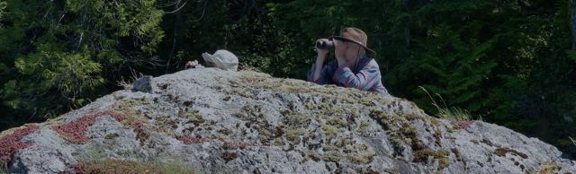 By launching in Cougar Creek, we did not cruise by all your other farms to reach Concepcion Point. When we arrived we kept our distance and used the rocks to steady the cameras.