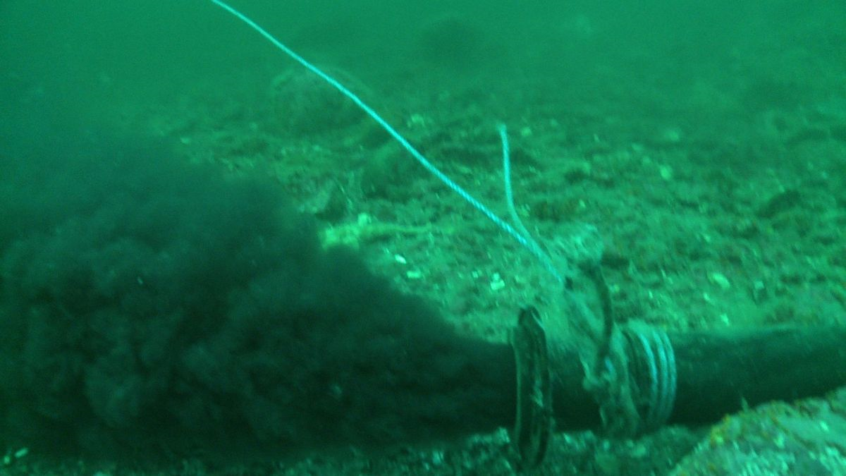 The blood appears black in this picture because it is 90 feet underwater. It is spewing directly into the Fraser sockeye migration route off Campbell River.