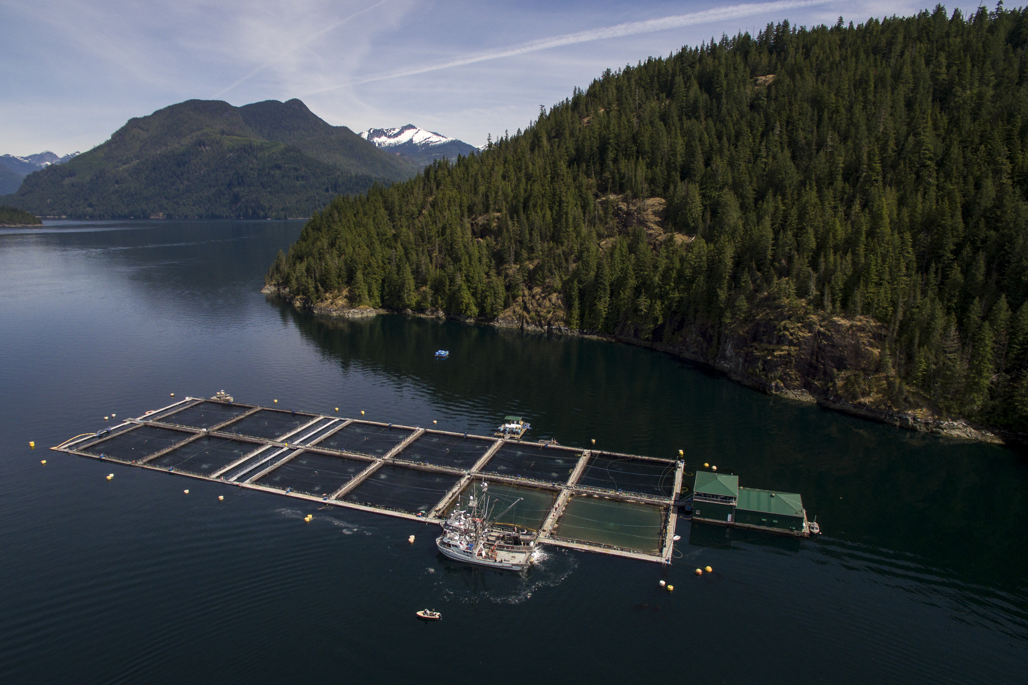 This incredible photo below by Tavish Campell sums up the whole problem with farmed salmon in BC waters. Young wild salmon are swimming too close to these industrial feedlots. Wild salmon must be supreme athletes to make a living, while the farmed fish can be infected with piscine reoviruse, and other pathogens and just wait lazily for food to drop out of the sky. The farmed salmon are vaccinated to survive in the highly unnatural farm-environment, but wild salmon are not. However they are being subjected to the same stew of pathogens, lice etc. We don't let wild birds to get this close to chicken factories because we learned to be afraid of avian flu – I don't know how this industry has talked our governments into allowing this to happen to the fish.