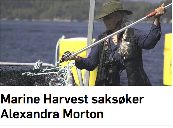 Early on the morning of September 26th I was scrolling through the online news and came across this headline in Norwegian – Marine Harvest plaintiff Alexandra Morton. It was a bit of a surprise to read in the Norwegian news that Marine Harvest is suing me, without any contact from Marine Harvest. I realized that this Norwegian headline reported on me by name, not as a Canadian scientist/activist or some other generic term. They apparently know me in the home country of the three Norwegian salmon farmers who use BC to grow Atlantic salmon and they felt it was important to get the news out ASAP that they had sued me.