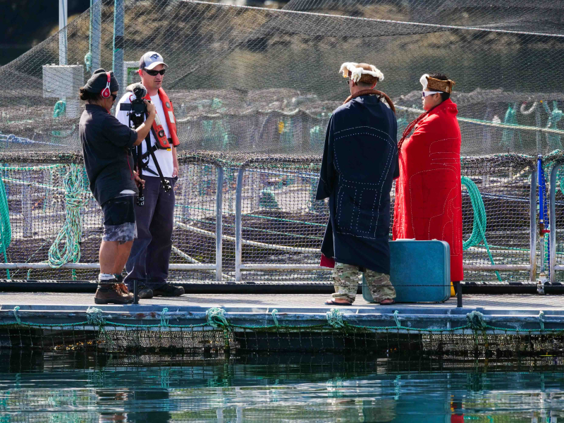 First Nations are camping on a salmon farm until the BC government resolves this and finally gets salmon farms out of the territory of First Nations who have said no. Either they need to get them out, or they have to tell First Nations why they have to have fish farms. After decades of research my view is that wild salmon and herring runs will rebuild enormously when salmon farms are no longer pouring pathogens over them.