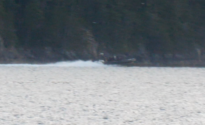 On Friday the 13th in the pre-dawn October morning the Viktoria Viking entered Knight Inlet. Ernest and I followed in my speedboat. We knew the farm in Port Elizabeth was empty and sure enough this Viking headed there. As we turned the corner towards the farm two large black RCMP zodiacs streaked out of the bay along the far shore. We had heard rumours that an RCMP tactical team were gathering in nearby Port McNeill, but why were these boats leaving the farm?