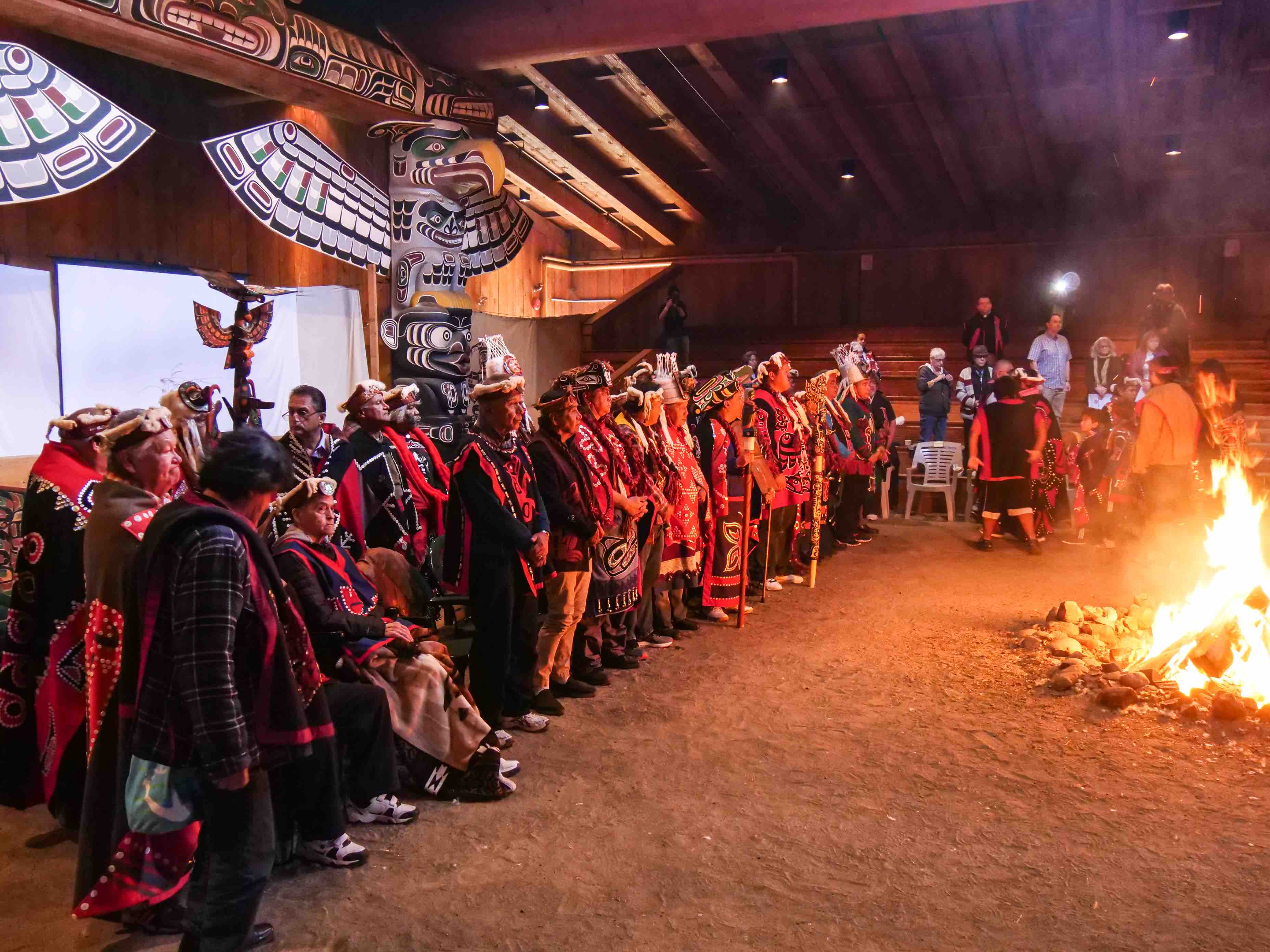 I wondered if Horgan had strong words later with whoever advised him to dress causal, as if he was going to a soccer game. The other leaders were dressed in regalia that put heat to their words. The fire that roared between the indigenous and non-indigenous governments warmed and threatened at the same time.