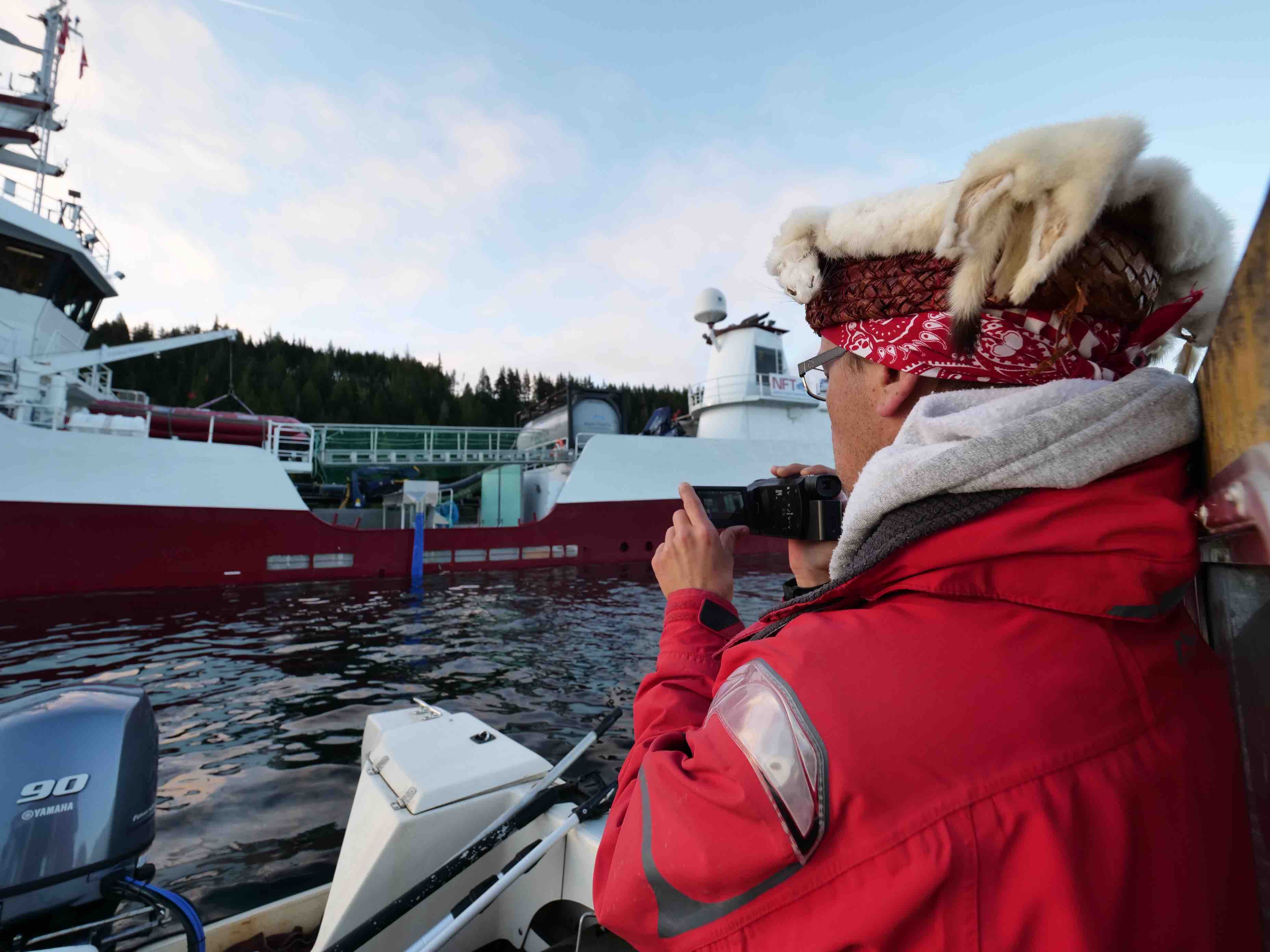 On October 12 the massive 150’ Norwegian registered Viktoria Viking headed north to the Marine Harvest hatchery in Ocean Falls on the BC Central Coast. It loaded up with Atlantic salmon smolts and late at night turned south. Would Marine Harvest breach the First Nation occupation of the farms in the Broughton Archipelago and put the fish into pens in the territory where 8 nations are standing united against the damage by salmon farms to wild salmon.