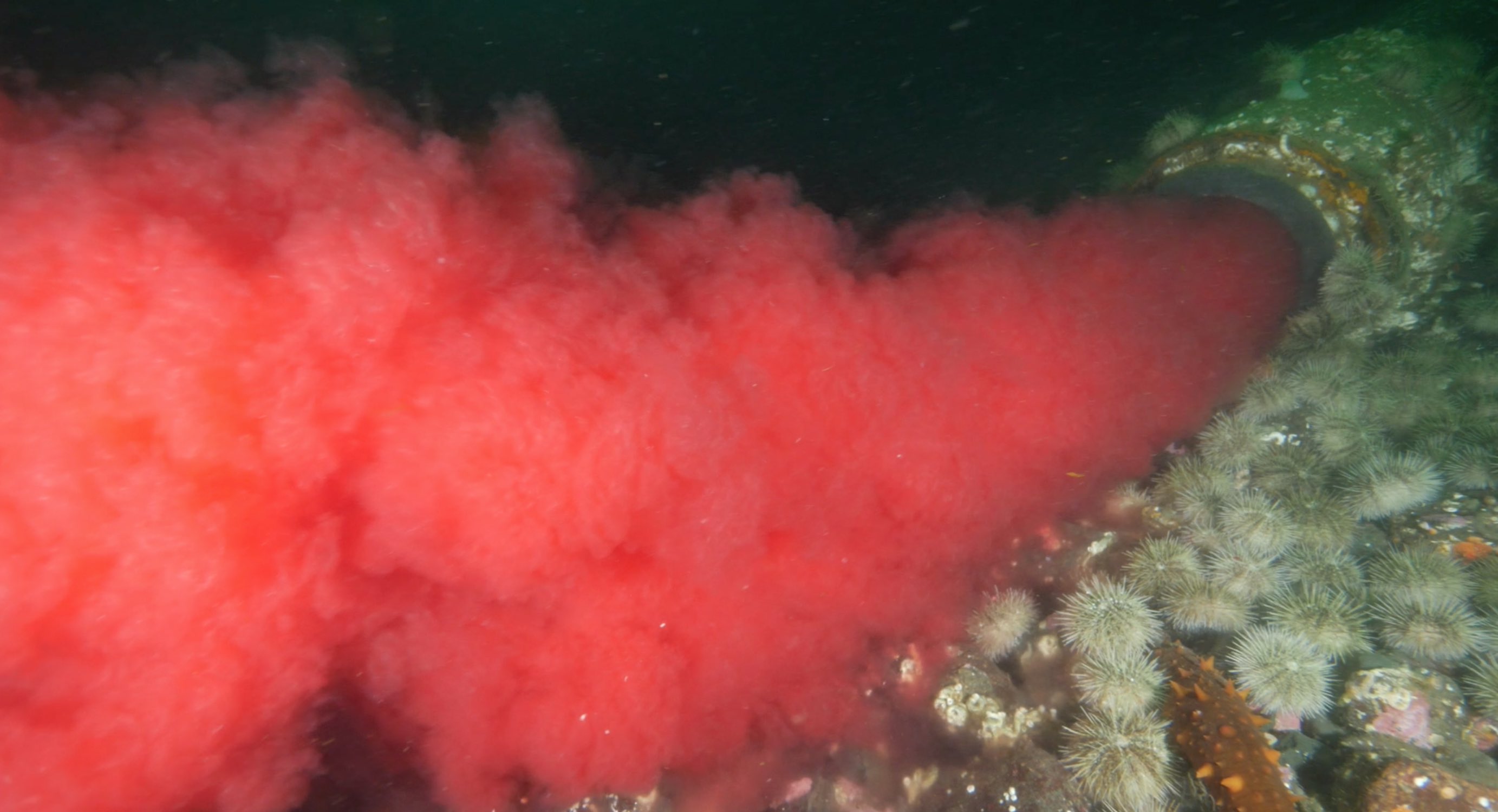 Piscine reovirus infected bloodwater pours from farm salmon processing plant into the migration route of the Fraser River salmon off Campbell River. Juvenile wild salmon will be swimming through this plume beginning in a few weeks.