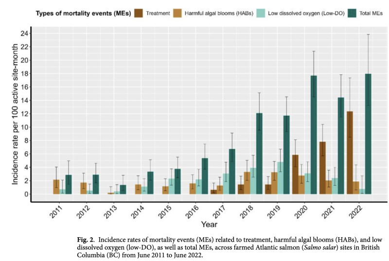 *Sumit Jyoti1, Beibei Jia1, Sonja Saksida1, Henrik Stryhn1, Derek Price2, Crawford W. Revie3 & Krishna K. Thakur1 2025. Spatiotemporal patterns of mortality events in farmed Atlantic salmon in British Columbia, Canada, using publicly available data. Scientific Reports 14:32122 http://creativecommo ns.org/licenses/by-nc-nd/4.0/.